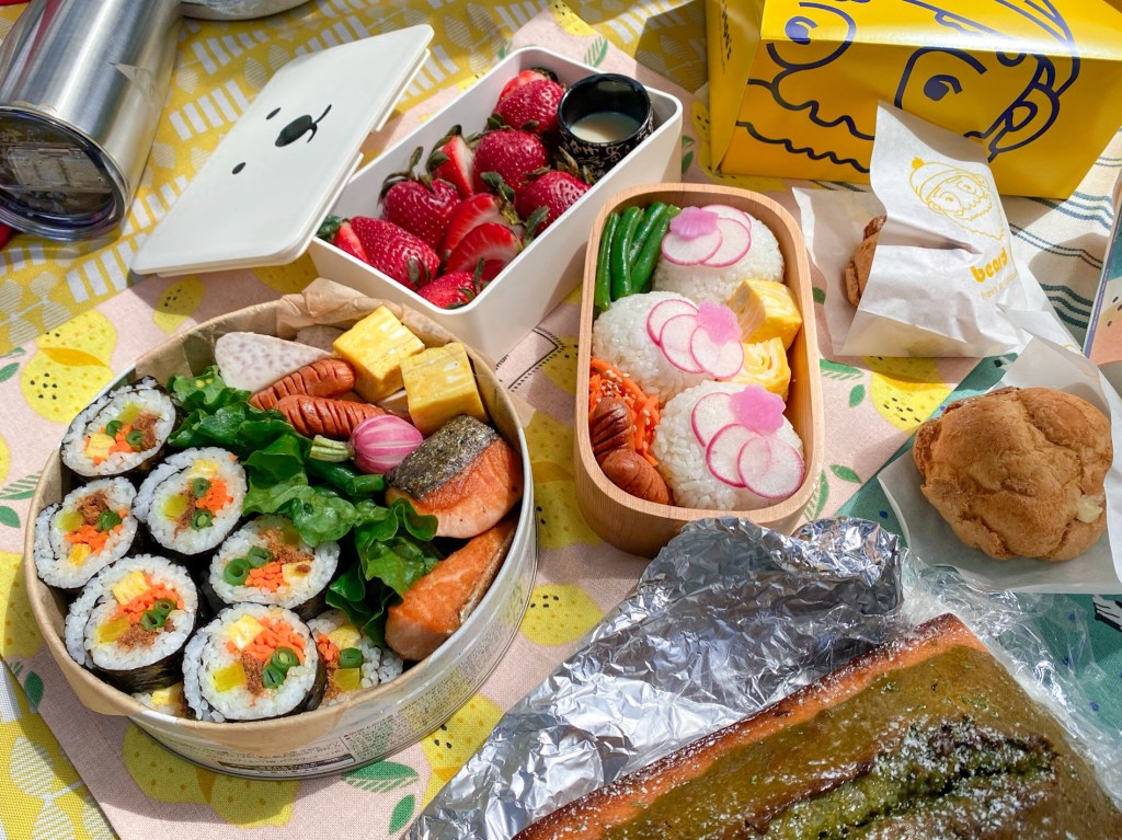 It’s always nice to have little surprises in the bento. As these details may seem trivial, they actually make your picnic so much more delightful. Pack a small container with condensed milk for strawberries, or use cookie cutters to shape your pickles can surely elevate your picnic into profession level.