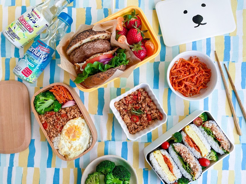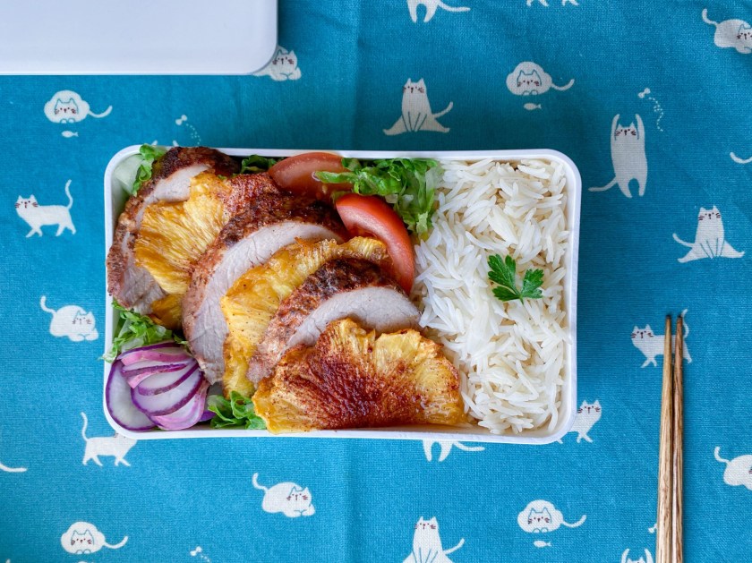 Sandwiches are never the most interesting lunch option, but with tandoori chicken, the warm spices and juicy filling can surely lighten up your day. Takes only 30 minutes in the oven, Tandoori chicken is very convenient to make during one of these work form home days. Before your 11:30 meetings, place marinated chicken thighs on a baking sheet and send to oven. By the time your meeting is over, your lunch awaits! Tandoori Chicken Sandwich Recipe Yield: 2 bento Prep time: 5 minutes (excluding marination time) Cook time: 30 minutes Ingredients: Marinade for 2 chicken thighs: 1/3 cup Greek yogurt Juice of 1/4 lemon 1/2 garlic clove, grated 1/2 tablespoon grated fresh ginger 1/2 teaspoon curry powder 1/4 teaspoon paprika 1/2 teaspoon salt Grounded black pepper Chili powder Method: Mix all ingredients for the marinade. Massage chicken thighs to coat it with marinade. Cover and leave in the fridge for overnight. Preheat oven to 400F. Cook the chicken for 30-35 minutes. 3. Assemble the sandwiches with lettuce, onion, tomatoes and other vegetables of your choice. …